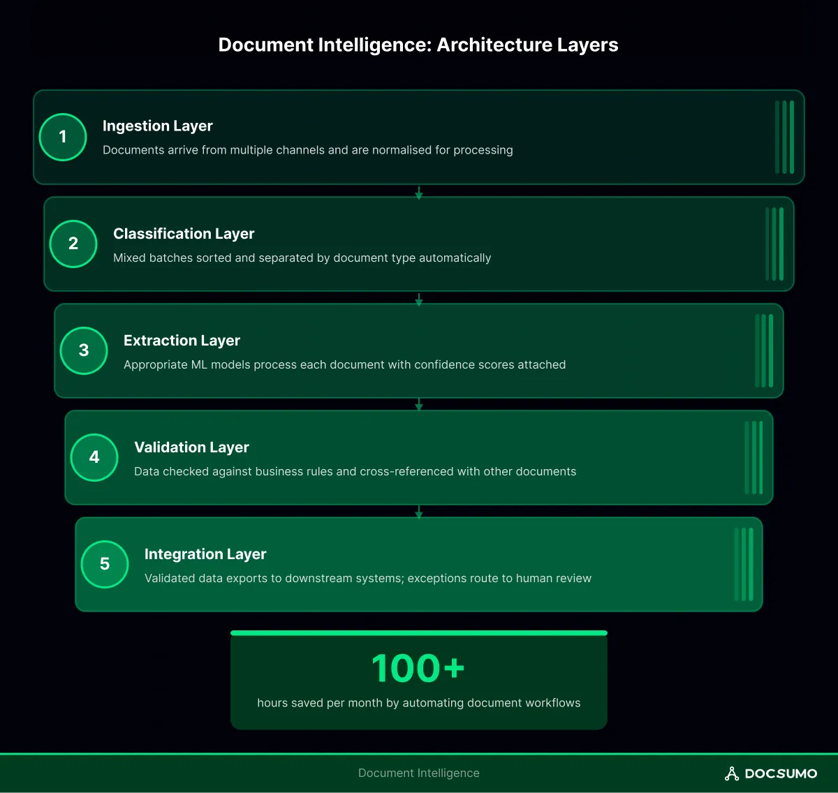 Document intelligence has matured from experimental technology into production-ready infrastructure. The question isn't whether AI can extract data from documents - it can. The question is whether your implementation handles the full workflow: intake, classification, extraction, validation, exceptions, and integration.
