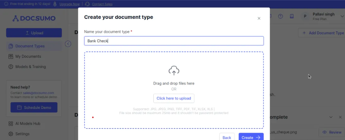 Begin by creating an account on the Docsumo platform. This access opens up a range of features perfect for handling bank checks. Head to the Docsumo website and select “Start free 14-day trial” to get started.