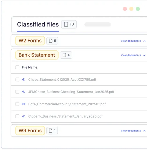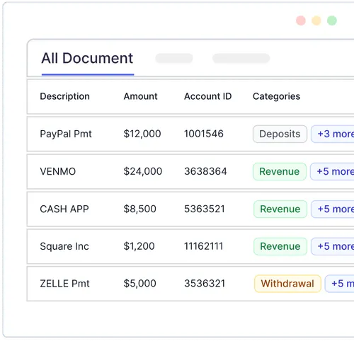 Your credit analysts shouldn't be transcriptionists. Docsumo’s Intelligent Document Processing (IDP) for lending solution extracts structured data from bank statements, W-2s, 1040s, pay stubs, and title reports, in whatever format they arrive, and returns ready-to-review data tables with 95%+ accuracy. When your team opens a loan file, the data entry is already done.